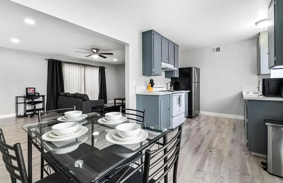 La Villa Chic 2-Bed Oasis Sleeps 6! Minutes From Strip! tiene una cocina bien equipada equipada con cafetera/tetera, una nevera y un horno para que los huéspedes puedan cocinar.